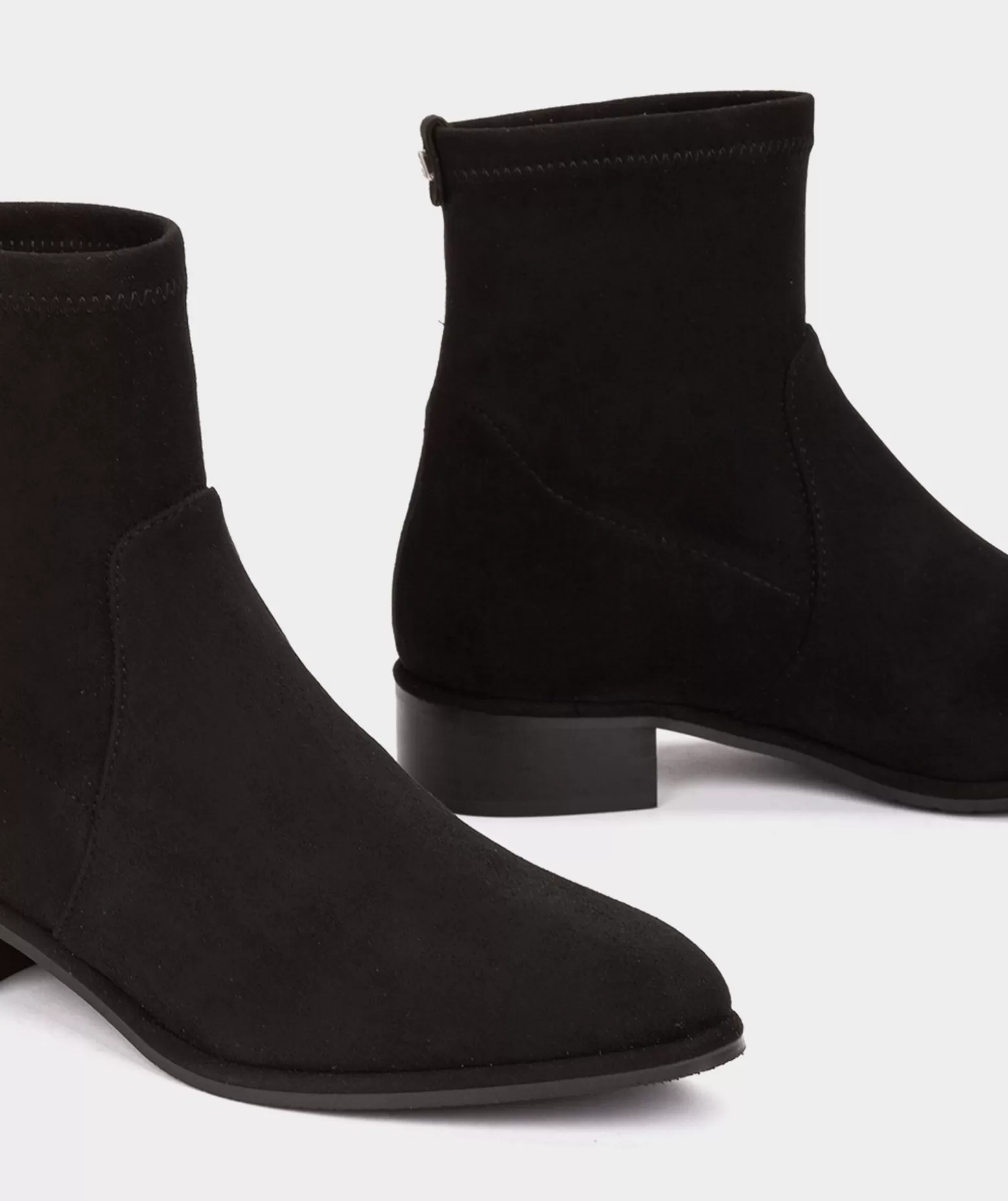 Bottines En Cuir Végétalien Extensible De Couleur Noire. Ces Bottines Basiques Sont Un Investissement En Termes De Style Et De Qualité. Elles Sont Parfaites Pour Celles Qui Apprécient L’Élégance Et La Simplicité.